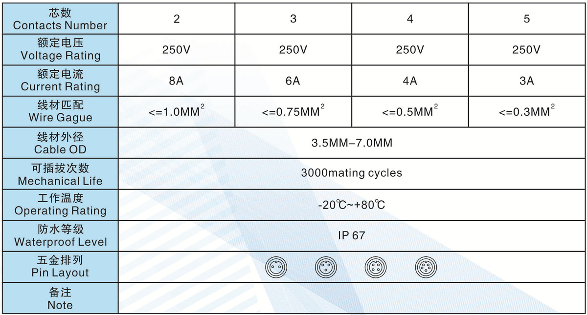 線材匹配(Wire  Gague):<=1.0MM2        <=0.75MM2        <=0.5MM2       <=0.3MM2
