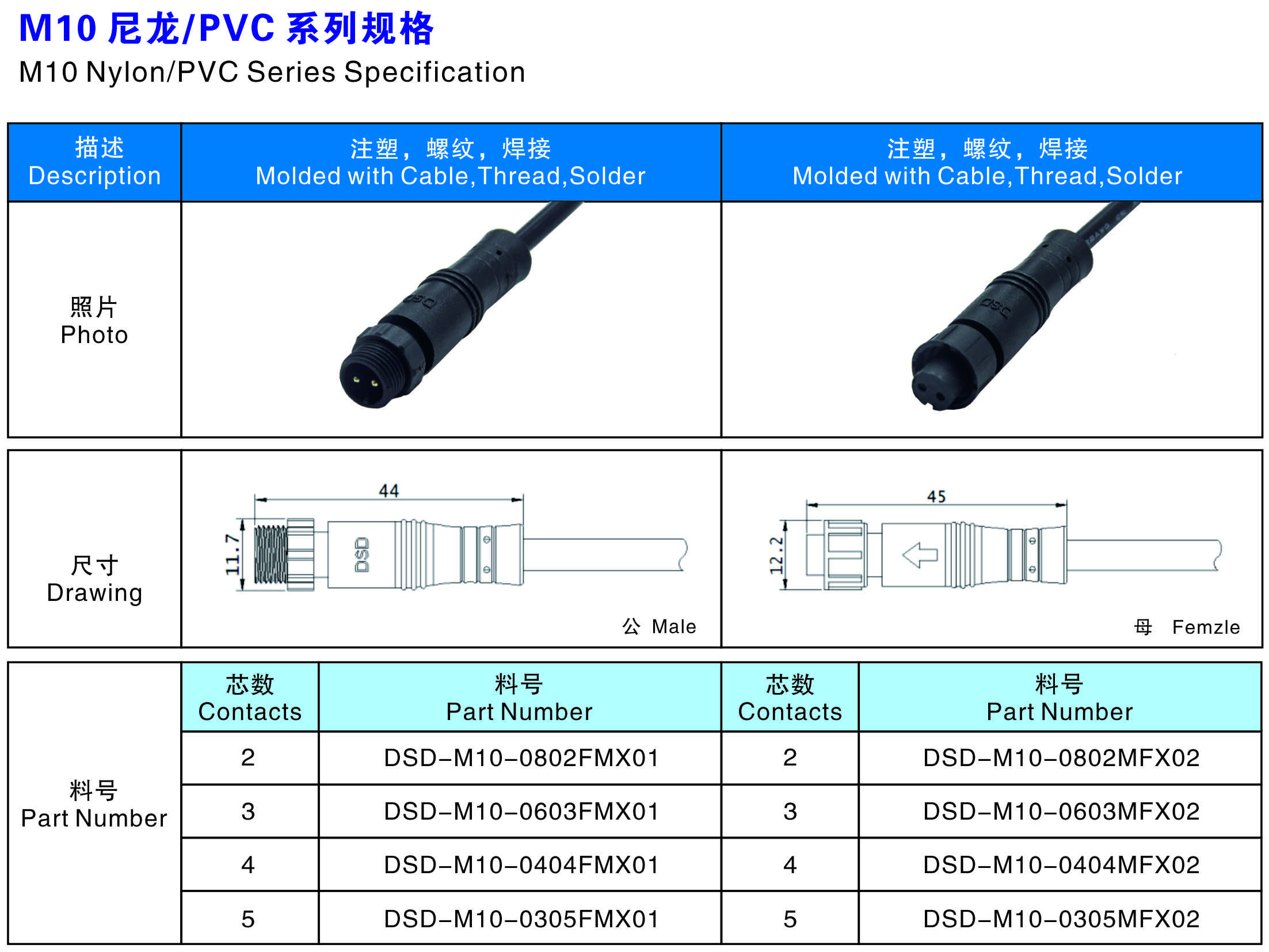 線材匹配(Wire Gague):<=1.0MM2 <=0.75MM2 <=0.5MM2 <=0.3MM2
