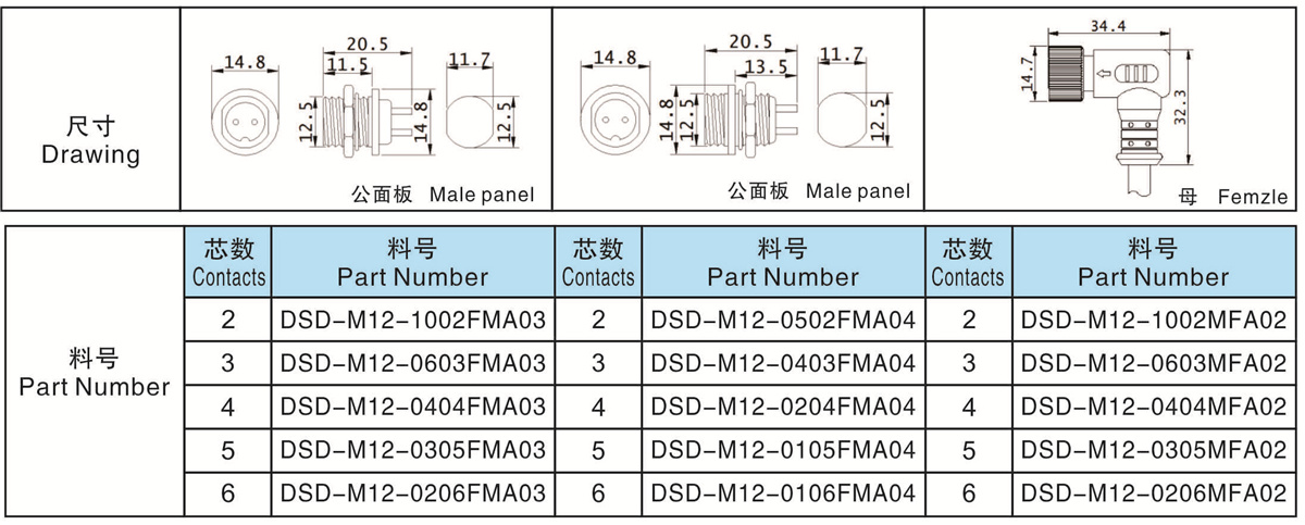 芯數(Contacts Number): 2 - 6芯