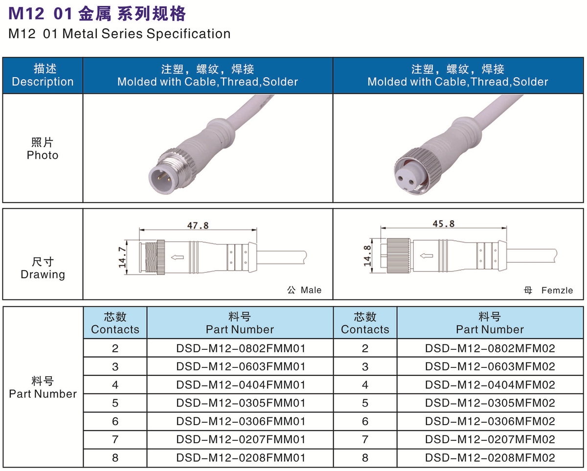 東勝達M12金屬,適用于通訊和照明等需要連接線的領域