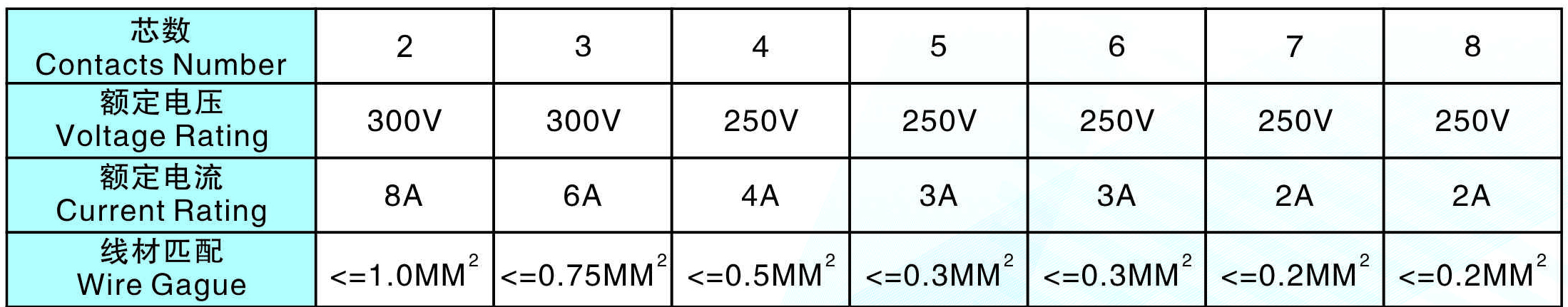 線材匹配(Wire Gague):<=1.0MM2 <=0.75MM2 <=0.5MM2 <=0.3MM2 <=0.3MM2 <=0.2MM2 <=0.2MM2