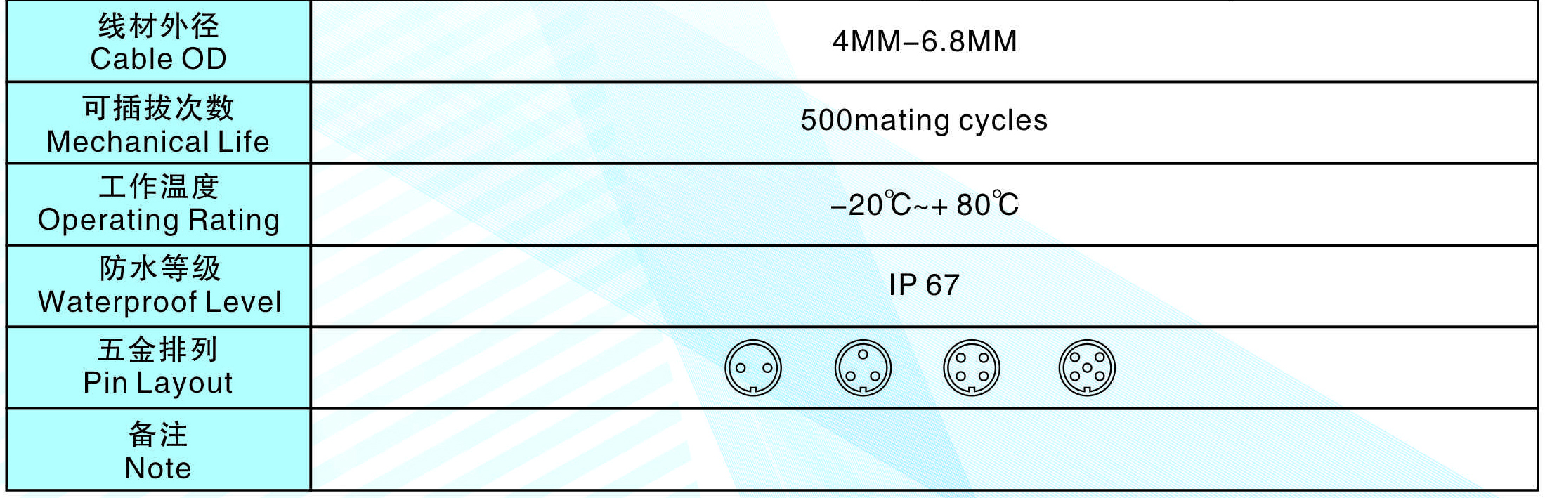 線材外徑(Cable OD):4MM-6.8MM