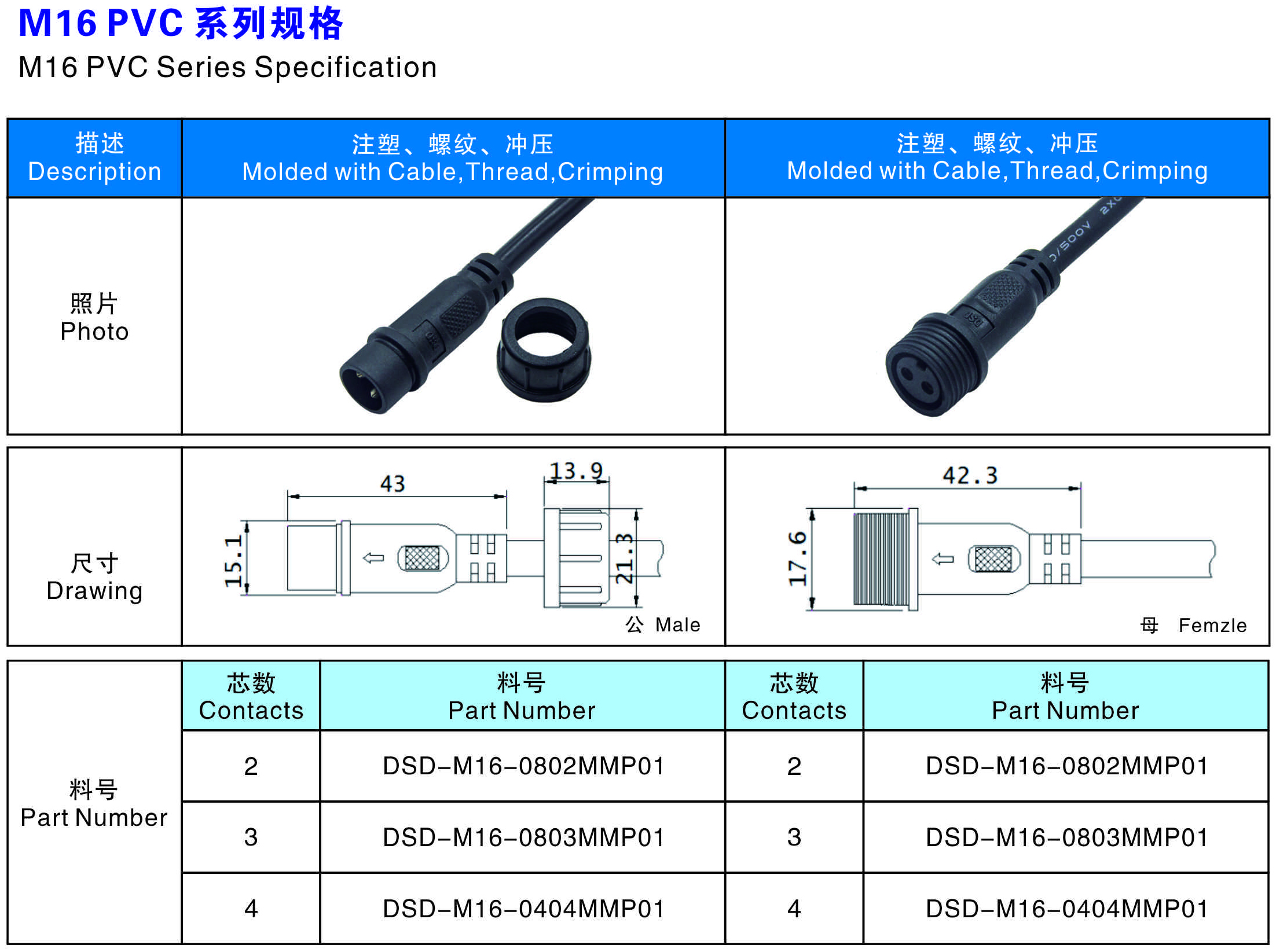 芯數(Contacts Number) : 2芯 3芯 4芯