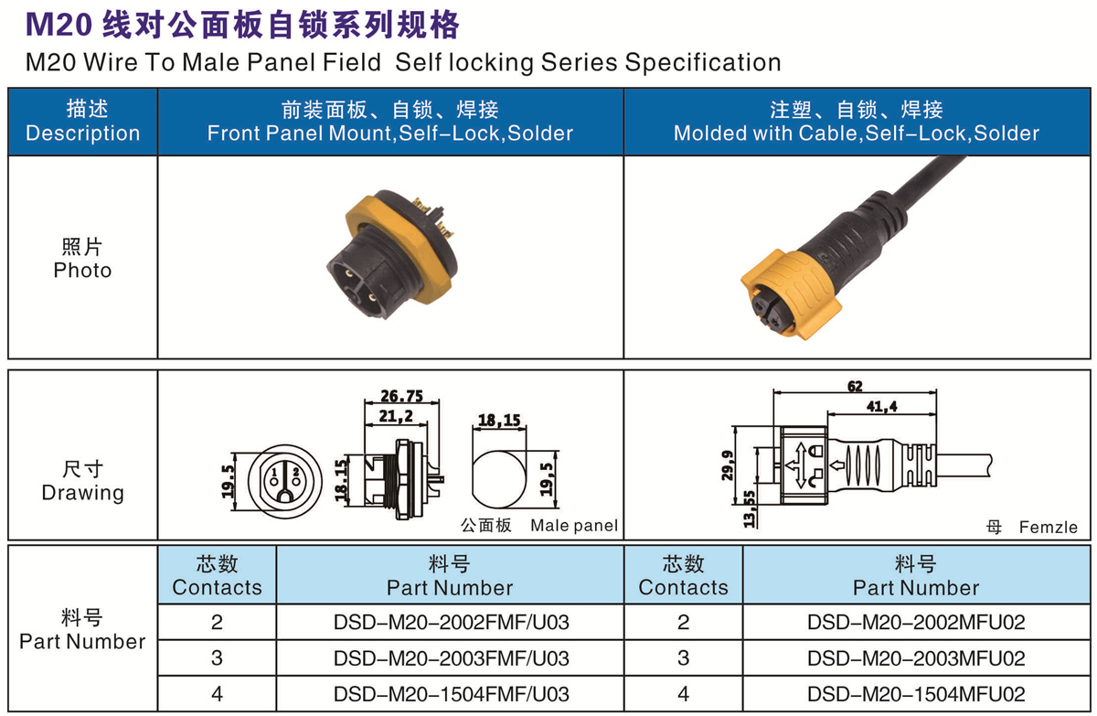 M20 線對(duì)公面板 自鎖系列