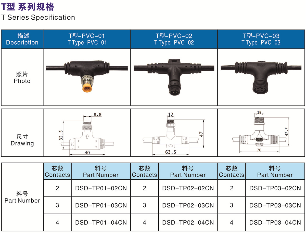 料號(Part Number) : 2芯(DSD-TP03-02CN) 3芯(DSD-TP03-03CN) 4芯(DSD-TP03-04CN)